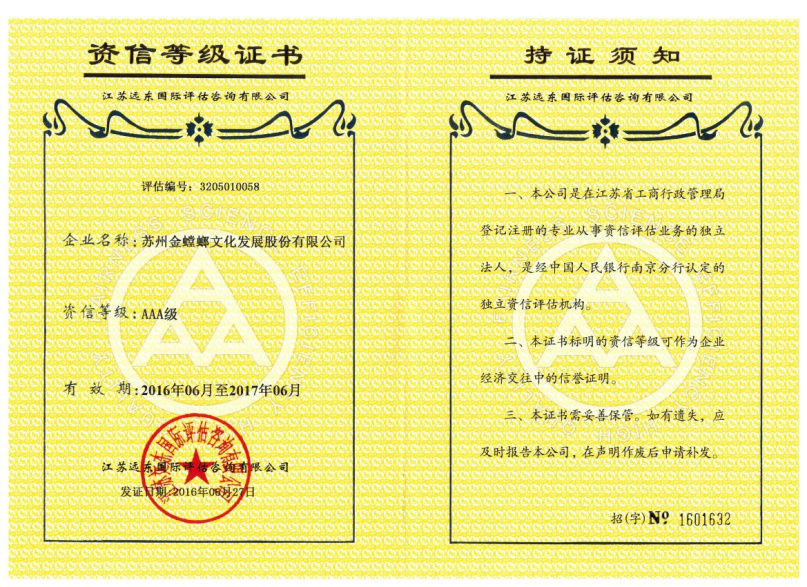 企業(yè)資信等級AAA證書