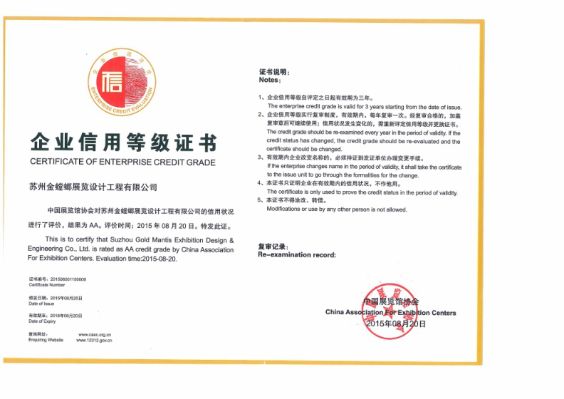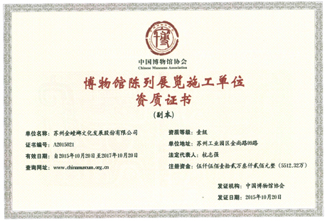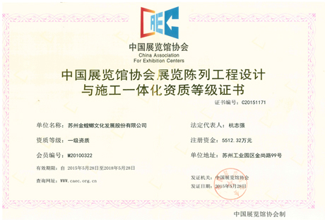 中國展覽館協(xié)會展覽工程一級資質(zhì)