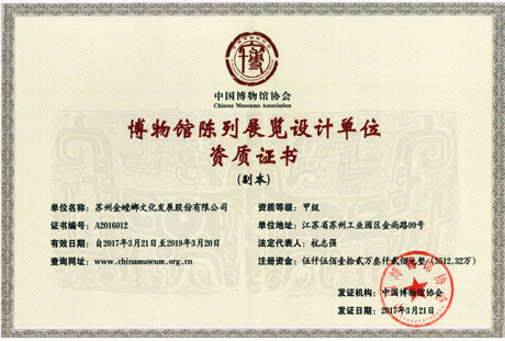 中國展覽館協(xié)會展覽陳列工程設(shè)計與施工一體化一級資質(zhì)