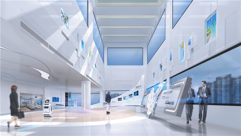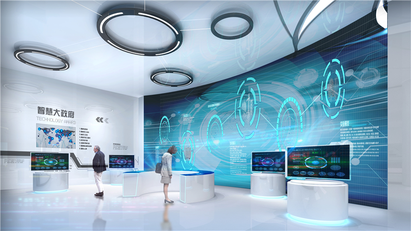 邳州市大數據中心展廳,位于邳州市新城區行政中心東側,以“打造智慧城市新標桿,呈現強富美高新邳州”為布展主題,共分為序廳、時光隧道、智慧政府、互聯網+應用、大數據時代、游戲互動區、未來環幕影院六大板塊,是一個極具現代感、科技感、時代感的智慧化展廳。