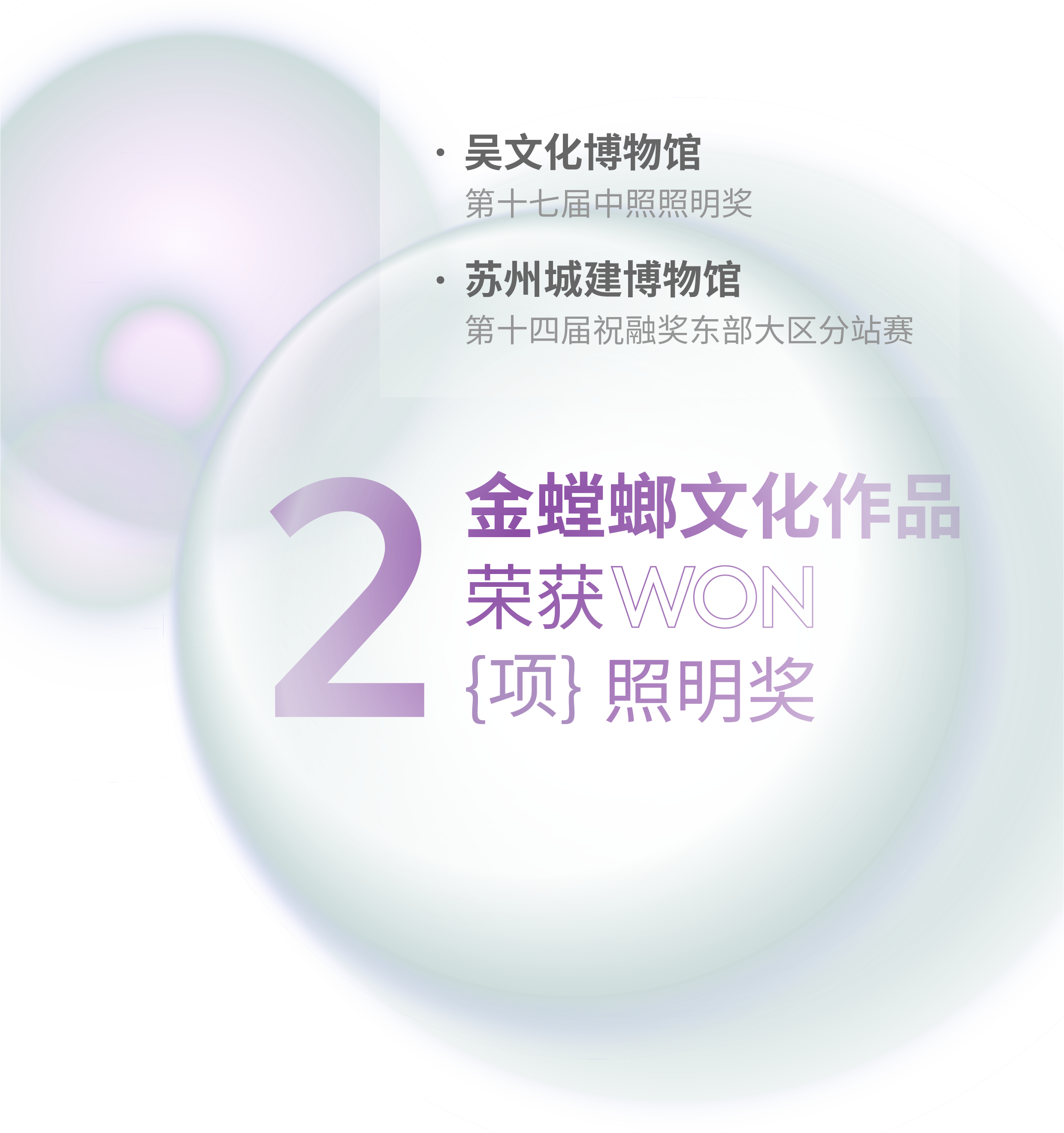 近日,第十七屆中照照明獎及第十四屆CBDA照明應用設計大賽(祝融獎)東部大區分站賽南京站獲獎名單公布,金螳螂文化作品吳文化博物館、蘇州城建博物館榮登榜單。 中照照明獎是由中國照明學會于2005年設立,經科學技術部批準、國家科學技術獎勵工作辦公室登記的中國照明領域唯一獎項,旨在獎勵國內外照明領域中,在科學研究、技術創新、成果推廣應用,實現高新技術產業化,照明工程實施和科普教育方面做出杰出貢獻的企事業單位和個人。 第十七屆中照照明獎評審結果正式公示,金螳螂文化設計項目吳文化博物館獲得本屆中照照明獎二等獎。 吳文化博物館位于澹臺湖景區世界文化遺產大運河及國保單位寶帶橋南側,建筑面積一萬八千余平方米。 不同展廳入口序廳的展示方式呈現多元化,為了凸顯風雅頌吳中的優雅氣韻,嚴格控制發光亮度,以免與周圍環境形成過大的亮度對比。采用蘇州園林韻味的造景,利用多層次的對景、模擬天光以及一小段石町小路共同呈現。場景化的布置配和層次分明的照明氛圍,游客得以直觀地領略當年戰役的情景。 7月26日,由中國建筑裝飾協會主辦的第十四屆祝融獎CBDA照明應用設計大賽東部大區南京分站賽頒獎典禮暨照明設計應用高峰論壇順利舉行。 當晚的頒獎典禮上,組委會正式公布了2022年度祝融獎東部大區分站賽(南京)各空間獎項、佳作獎、優勝獎等榮譽。金螳螂文化憑借作品蘇州城建博物館榮獲展陳空間二等獎。 蘇州城建博物館占地面積 1600 平方米,是以全國重點文物保護單位——衛道觀前潘宅為基底改建的專業博物館。 建館、造景、養心,于平江古巷里,把握城市生長脈絡。金螳螂文化項目團隊以蘇州之窗為核心元素構建了穿越古今的時光通道,貫穿起蘇州城建博物館城紀千載、現代蘇城、城市生長、城市客廳、百館之城等主要展廳。 光影錯落,為空間增色。在各類展館的設計營造中,照明都是重要的一環。 金螳螂文化設計團隊合理引入自然光,嚴格把控展項光線,以求打造和諧舒適的觀展氛圍,讓空間更有故事。