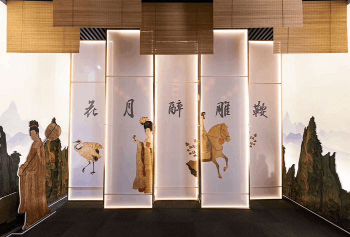 “唐風(fēng)”裝飾的形式設(shè)計語言,在鮮明厚重的色彩氛圍中烘托出唐代藝術(shù)的輝煌成就。